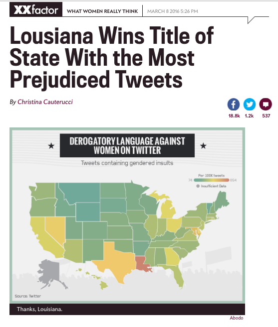 One of our highest performing campaigns of all time thus far focused on several extremely controversial, sensitive topics on social media: racism, sexism, and homophobia. Abodo analyzed over 150 keywords and the geolocations from hundreds of thousands of Tweets over the course of 18 months to pinpoint which states displayed the most prejudices online. The result was nearly 650 media mentions and over 67,000 social shares.