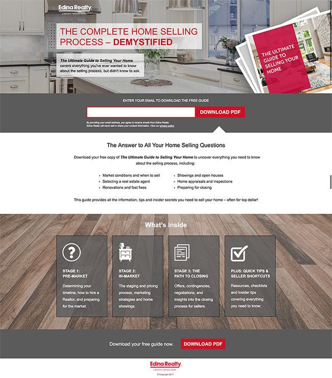 Check out this Unbounce landing page they created to distribute their Ultimate Guide to Selling Your Home – it converts at a whopping 18%: